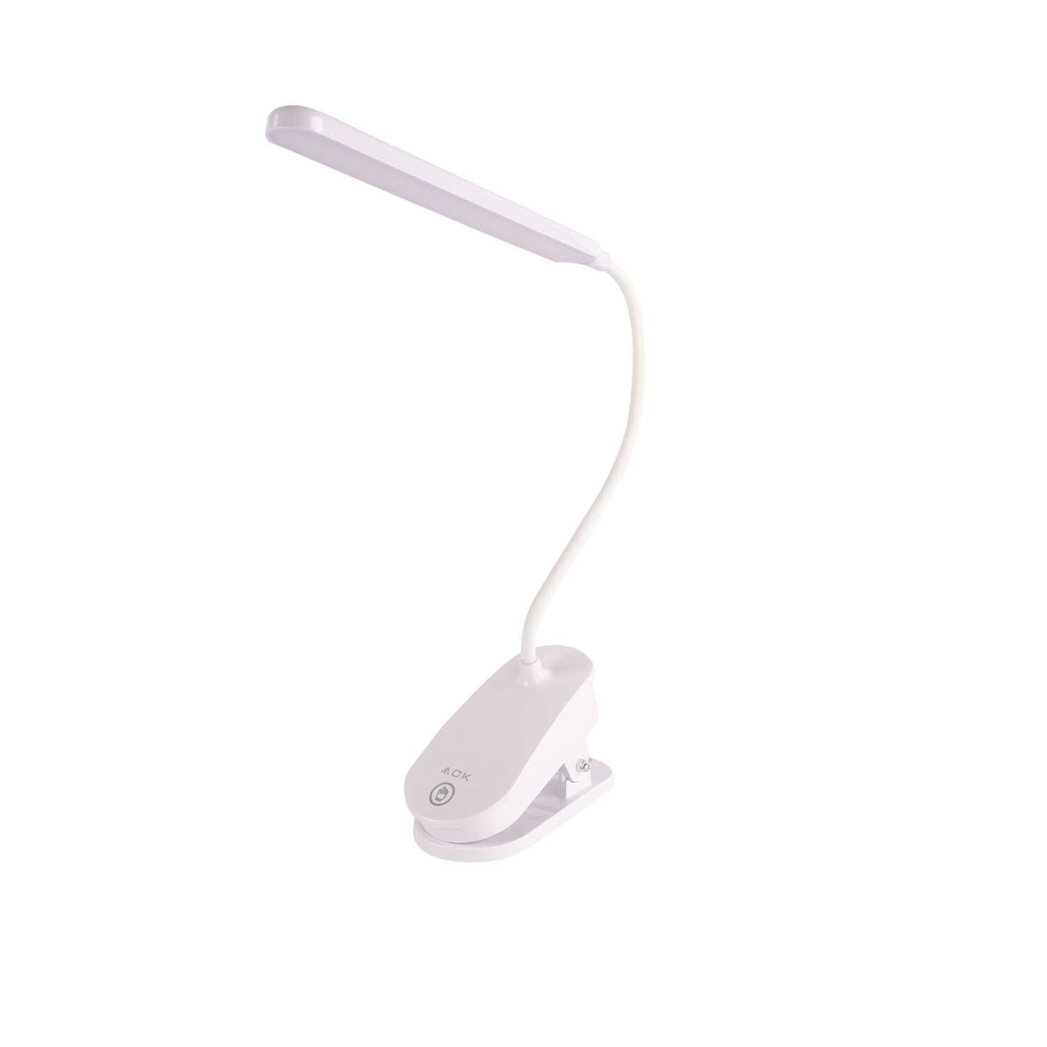 ACK Şarjlı Dokunmatik Dimli Beyaz Gövde Led Masa Lambası 2,5W Ip20 Mandallı AF11-10012
